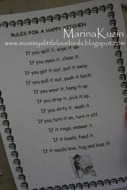 Here are some pretty cool kitchen rules that Yelena passed out to the girls.